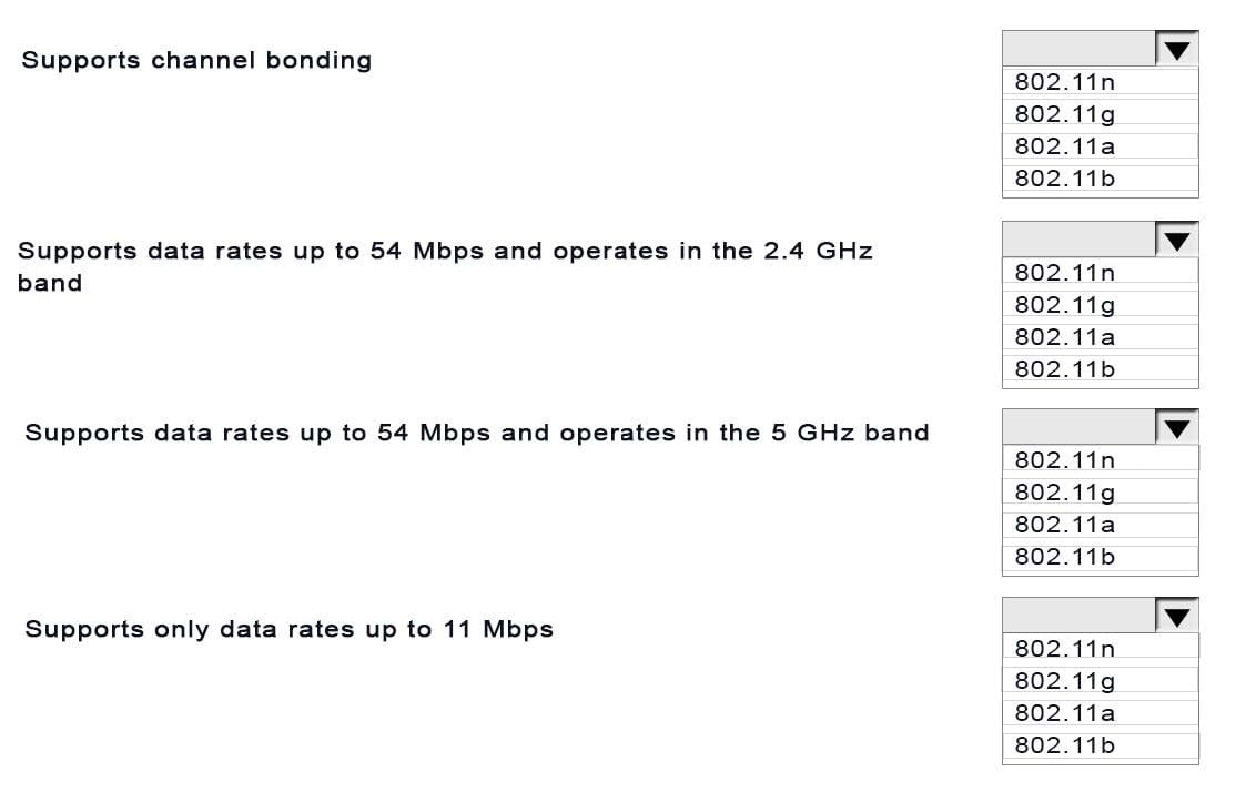 Match the description with the 802.11 standard. (Each option may be used only once.)