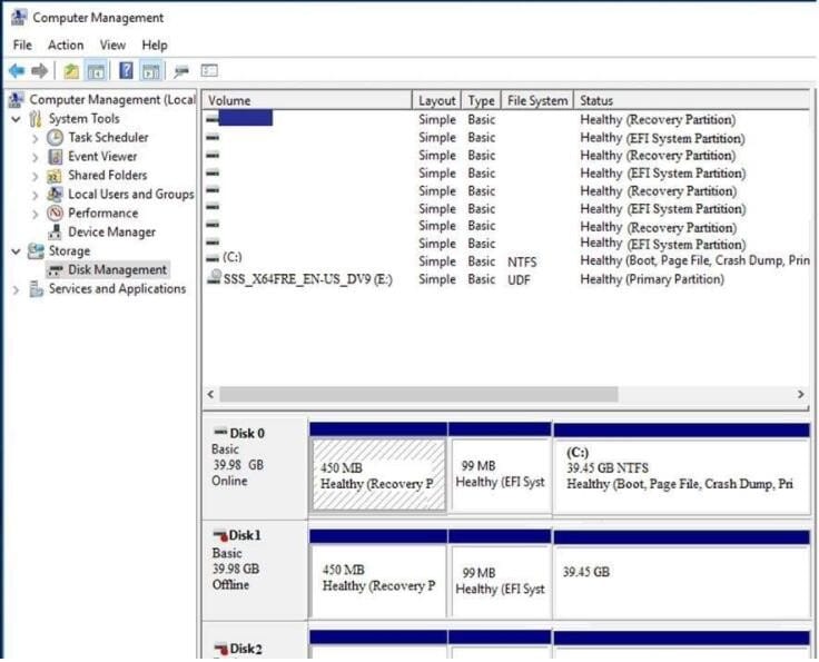 A customer connected a logical drive from 3PAR StoreServ array to the Windows Server 2016 as a data drive.