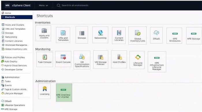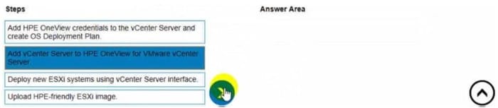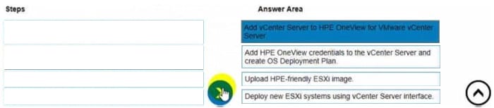 Put the steps required to configure HPE OneView for VMware vCenter Server on the left into their correct order on the right.