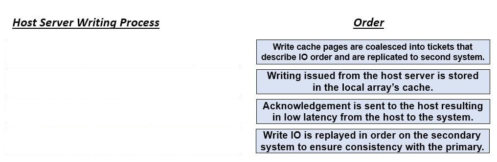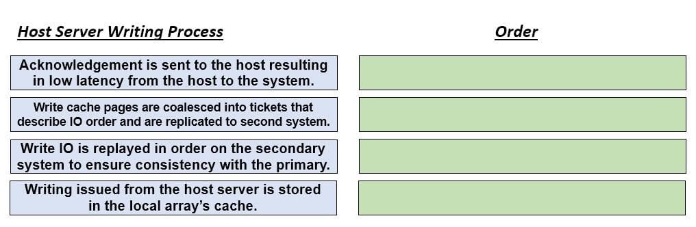 Arrange the host server writing process in a 3PAR asynchronous streaming onsite remote copy environment in the correct order.