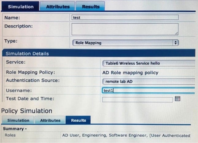 D. The simulation test result shows the firewall roles assigned to the client by the Aruba Controller.