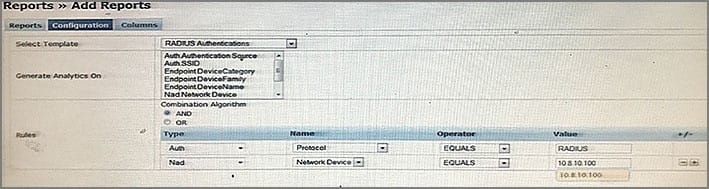 A. all RADIUS authentications from the 10.8.10.100 NAD to ClearPass