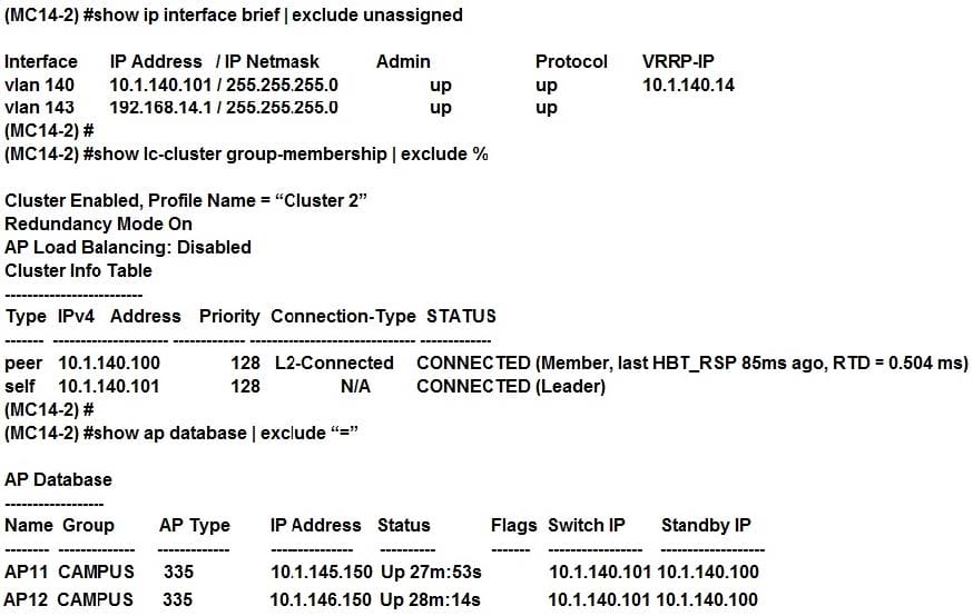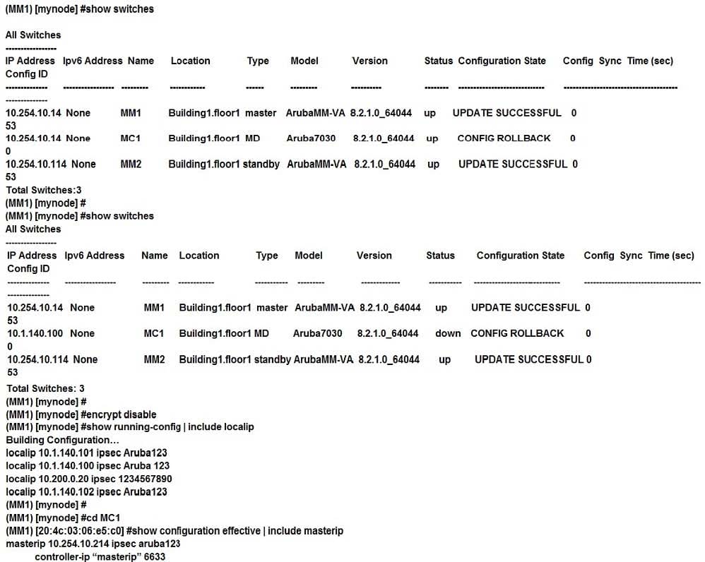 Based on this information, the network administrator logs into the MM and reviews the output shown in the exhibit.