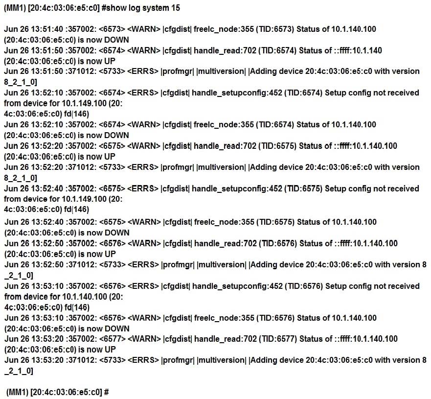 After some research, the network administrator logs into the MM and reviews the output shown in the exhibit.