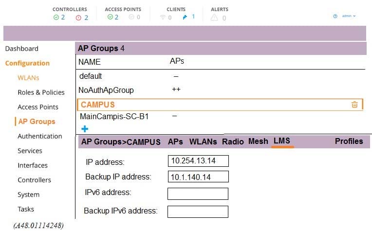 In the past two months, brief failures have occurred in the 7240XM Mobility Controller (MC) that runs ArubaOS 8.3 and terminates the RAPs. These RAPs disconnect, affecting the users connected to the RAPs. This also causes problems with code uploads and database synchronizations. Therefore, the company decides to add a second 7240XM controller for redundancy.