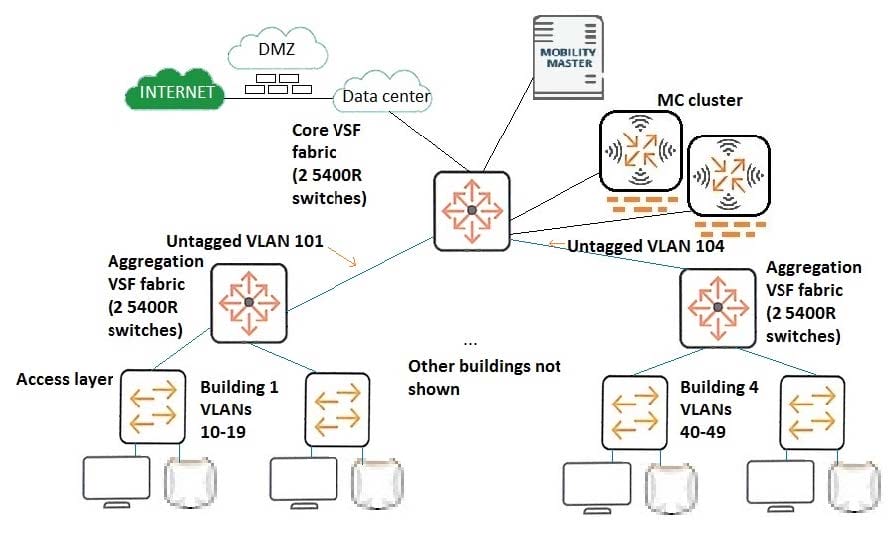 connected as shown. The new wireless solution will support a total of 450 APs and about 26,000 wireless