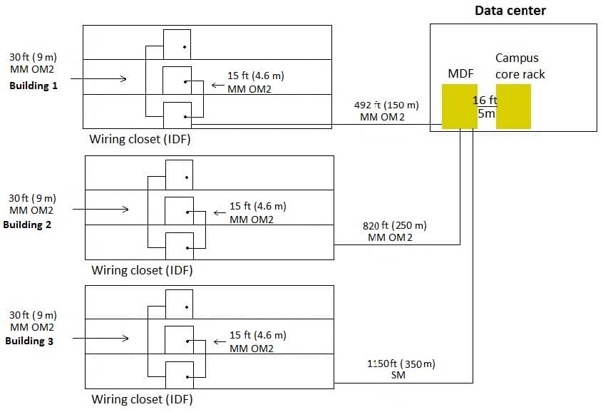 A customer has a campus that has expanded to several buildings. The buildings are between 100 and 200