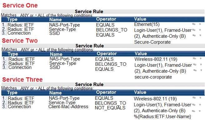 A user connects to an Aruba Access Point wireless SSID named "Secure-Corporate" and performs an 802.1X authentication with ClearPass as the authentication server. Based on this service configuration, which service will be triggered?