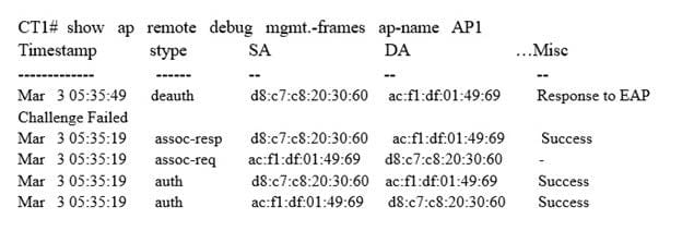 A user uses Microsoft Windows for a wireless session. Based on the output shown in the exhibit for the selected Aruba AP, what is the possible problem with this user's wireless session?