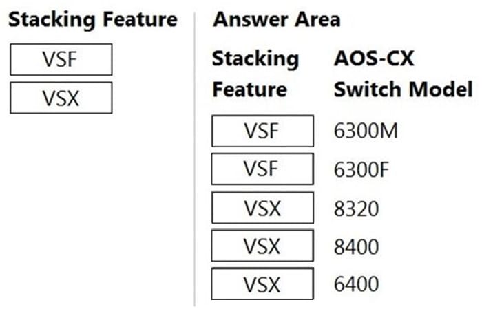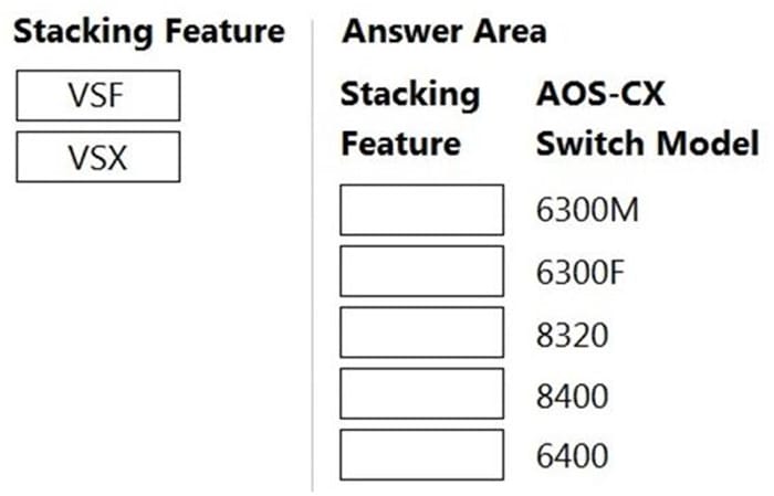 Match the available stacking feature to the correct AOS-CX switch model. Stacking features may be used more than once.