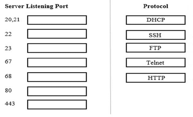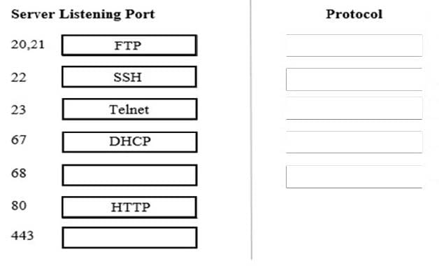 Match each network protocol to the correct server listening port. Not all answers will be used.