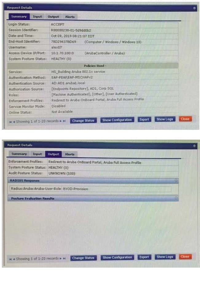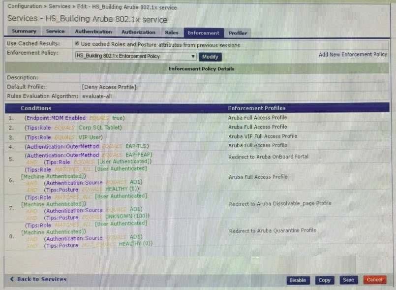 The customer configured an 802.1x service with different enforcement actions for personal and corporate