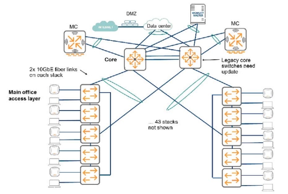 The customer had considered Aruba 5400R Series switches, but the architect recommends Aruba S320 switches Instead.