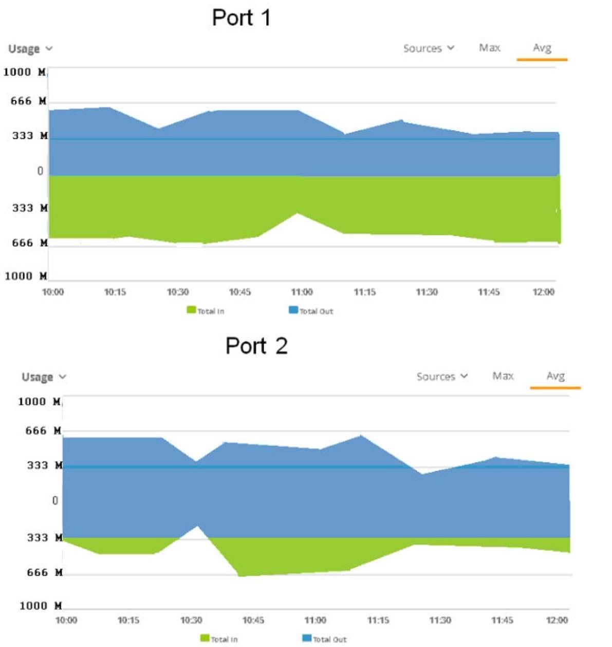 A customer needs a wired network upgrade and has complained about performanceissues. The architect collectedinformation about traffic now on several switch ports in different locations across the network, and the results are shown inthe exhibit. Each of these ports is a 1Gbps port.