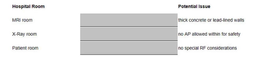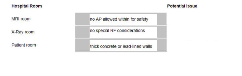 Match each hospital room with a potential issue for the AP design (Each match will be used once.)
