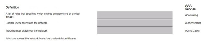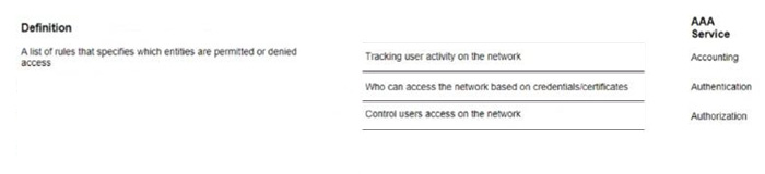 Match each AAA service with its correct definition (Matches may be used more than once or not at all)