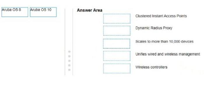 Match the feature to the Aruba OS version (Matches may be used more than once.)