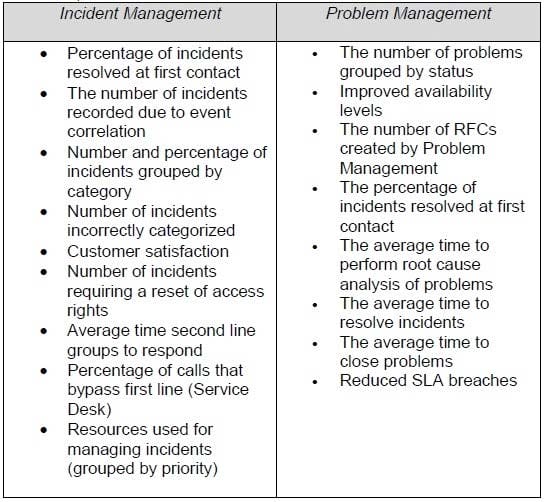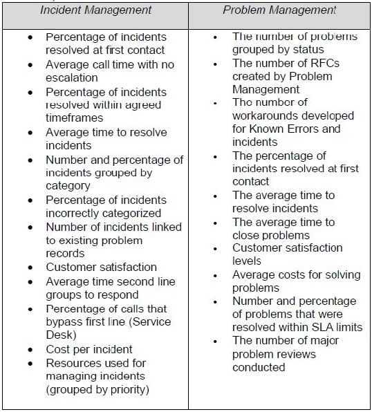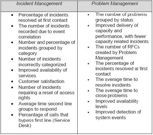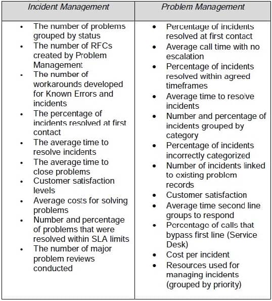 Discussions have recently been held regarding the performance ofthe Incident and Problem Management. There has been someconfusion among IT managers as to what metrics demonstrate thequality and performance of these two processes.