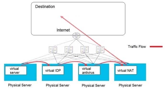 You are designing a data center security architecture. The design requires automated scaling of security services according to real-time traffic flows.