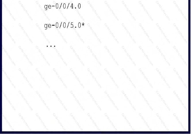 Click the Exhibit button. Referring to the exhibit, what does the asterisk (*) following the ge-0/0/5.0 interface indicate?