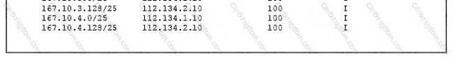 Referring to the exhibit, which three actions would summarize these routes to a BGP peer? (Choose three.)