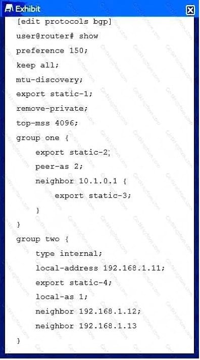 Click the Exhibit button. Referring to the exhibit, which policy will export routes to IBGP peers?