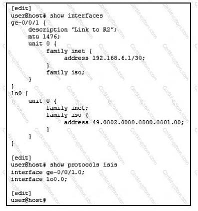 The IS-IS adjacency between routers R1 and R2 will not establish. Referring to exhibit, what is the problem?