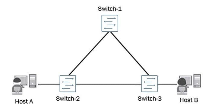 A number of reports from end users indicate that internal and external communications are intermittent and not reliable. You verified the status of the switch ports and have determined that they are up and operational. You also noticed a very high level of link bandwidth utilization on those same ports. The current topology of the affected environment is shown in the exhibit.