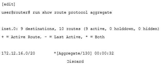 Given the route shown in the exhibit, which two prefixes contribute to the aggregate route? (Choose two.)