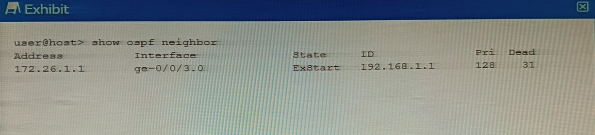 A. A subnet mask mismatch exists between the OSPF neighbors.