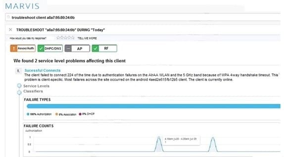 Referring to the exhibit, you asked Marvis to troubleshoot a client. In this scenario, what did Marvis determine?
