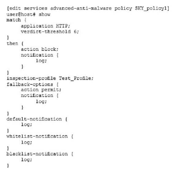 Referring to the exhibit, you have configured a Sky ATP policy to inspect user traffic. However, you have noticed that encrypted traffic is not being inspected.