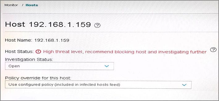 Referring to the exhibit, the host has been automatically blocked from communicating on the network because a malicious file was downloaded. You cleaned the infected host and changed the investigation status to Resolved ?Fixed.