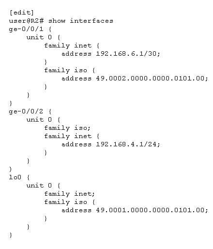 Routers R1, R2, and R3 have set protocols isis interface all configured and no other set protocols isis configuration.