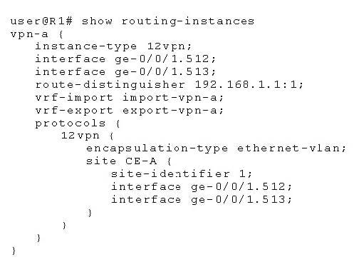You have configured a BGP-signaled Layer 2 VPN with the configuration shown in the exhibit. Which two statements are true in this situation? (Choose two.)