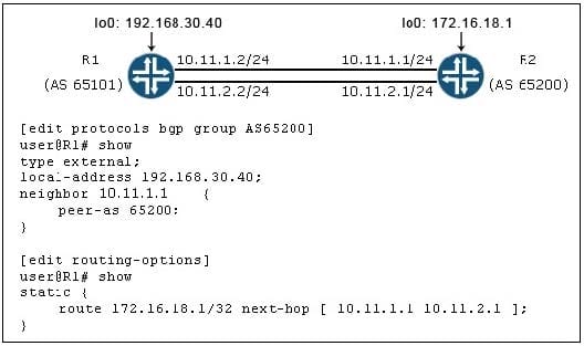 Referring to the exhibit, what must be added to the existing configuration to ensure that per-prefix load balancing occurs?