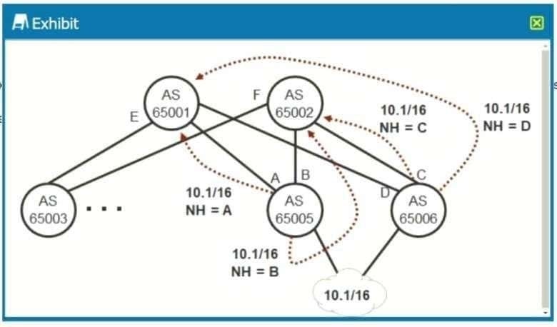 You choose the EBGP design shown in the exhibit as your IP fabric design. You must ensure that both routes received by the spine nodes will be used for ECMP forwarding.