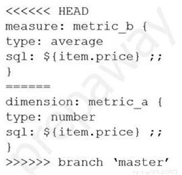 A developer commits changes after adding LookML for a new measure. Upon pulling from production, the developer notices the following lines in the LookML: