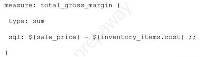 A developer defines the following measure in the order_items view: The code must validate without errors. Which action should the developer take?