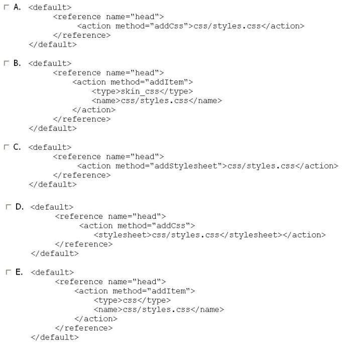 Which two of the following would add a CSS file to every page? (Choose TWO.)