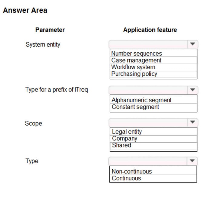 What application features should you use? To answer, select the application feature to match the parameter in the answer area.