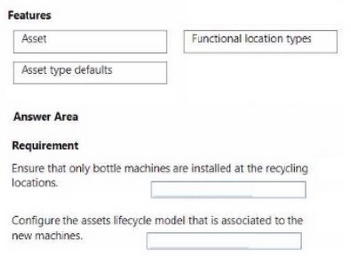 What should you configure for each requirement? To answer, drag the appropriate features to the correct requirements. Each feature may be used once, more than once, or not at all. You may need to drag the split bar between panes or