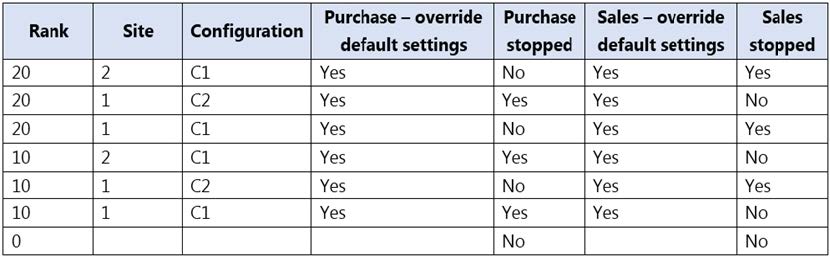 A company uses Dynamics 365 Supply Chain Management for purchasing and sales operations across three different sites.