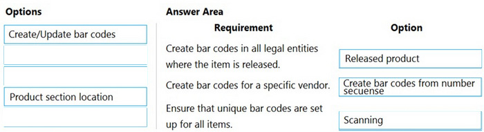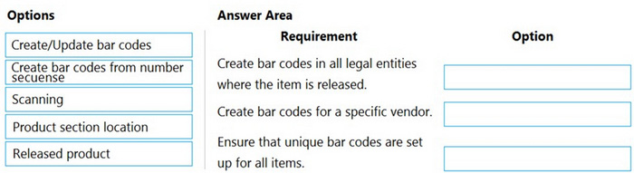 Which option should you use for each requirement? To answer, drag the appropriate options to the correct requirements. Each option may be used once, more than once, or not at all. You may need to drag the split bar between panes or