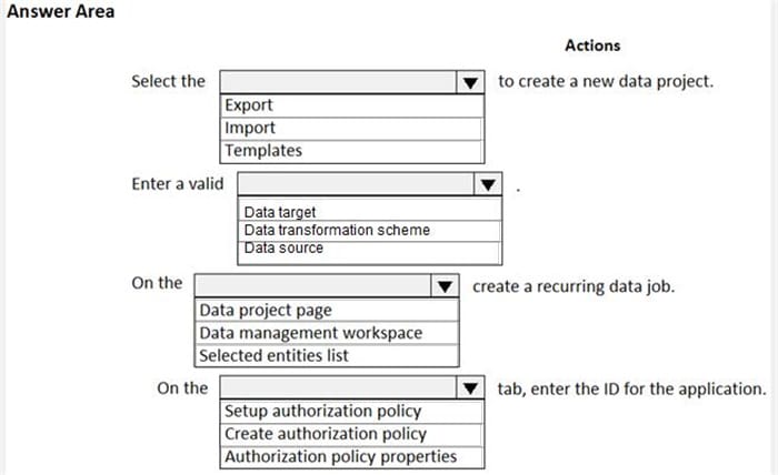 In which order should you perform the actions? To answer, move all actions from the list of actions to the answer area and arrange them in the correct order.