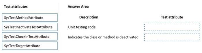 Which test attribute should you use? To answer, drag the appropriate test attributes to the correct descriptions. Each test attribute may be used once, more than once, or not at all. You may need to drag the split bar between panes or scroll to