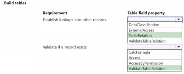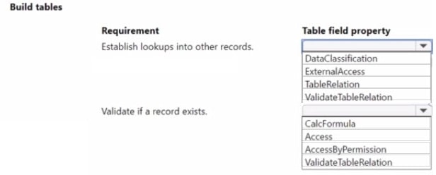 Which table field property should you use? To answer, select the appropriate options in the answer area.