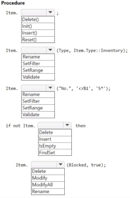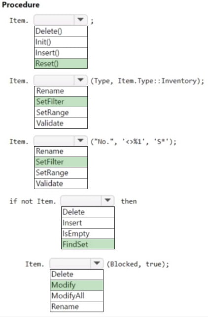 You are writing a procedure to block all inventory items with numbers that do not start with the letter S.