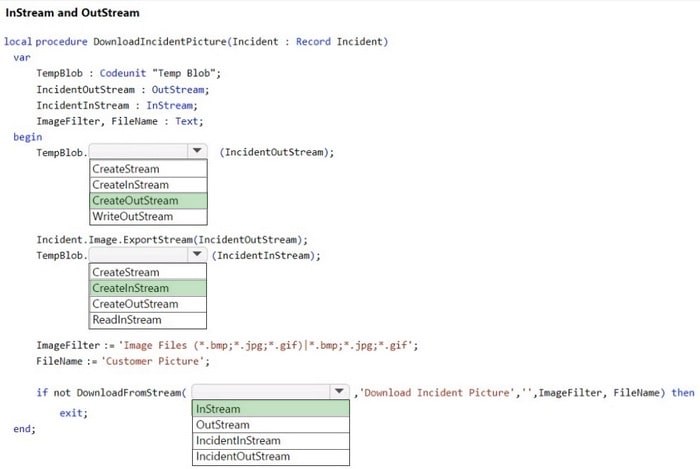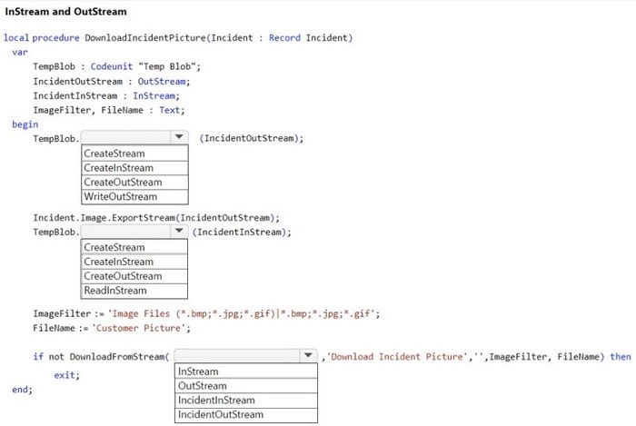 How should you complete the code segment? To answer, select the appropriate options in the answer area.