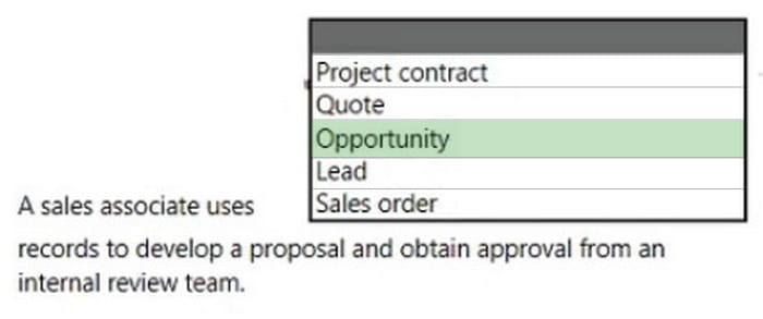 Which records are used for this stage of the sales process? To answer, select the appropriate option in the answer area.